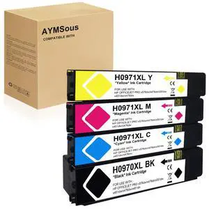 AYMSous 970XL 971XL High Yield Combo Pack Compatible Ink Cartridge Replacement for HP 970XL 971XL for HP OfficeJet Pro X476dw X576dw X451dw X551dw X451dn X476dn Printer (BK/C/M/Y 4-Pack)