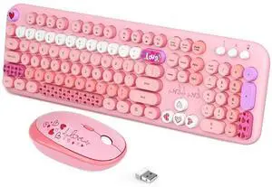 Wireless Keyboard and Mouse Combo - Cute Colorful Keyboard and Mouse, Retro Typewriter Keyboard with 2.4GHz Plug & Play, for Windows 11/10/7, Laptop, PC (Hot Pink)