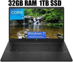 HP 17 Laptop, 17.3" HD+ (1600 x 900) Display, Intel Core i5-1235U 10-core Processor, Intel Iris Xe Graphics, WiFi6, Bluetooth5, 32GB DDR4  1TB PCIe SSD, Windows 11 Pro