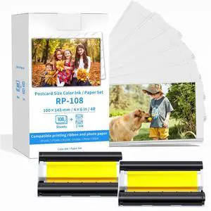 Compatible for Canon Selphy CP1500 CP1300 Ink and Paper Set RP-108IN RP108 2 Color Ink Cartridges and 108 Sheets 4x6 Photo Paper Glossy for Selphy CP1200 CP1000 CP910 CP820 Compact Photo Printers