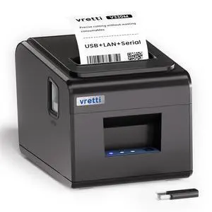 vretti Thermal Receipt Printer, 3'1/8 80mm Direct Thermal Printer with USB Serial LAN Port - Kitchen POS Printer ESC/POS Command Support Cash Drawer