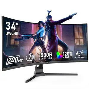 Gawfolk 34 Inch Ultrawide Curved 200Hz Gaming Computer Monitor,1500R PC Screen 21:9 UWQHD (3440x1440),120% sRGB,Adaptive Sync,Built-in Speaker,Display PortHDMI,Compatible with Wall mounting -Black