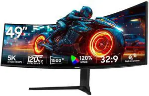 Gawfolk 49 Inch Curved Gaming Monitor 120hz,1500R PC Monitor Built-in Speakers, DQHD 5120x1440 Computer Screen for Home Office Business, DP, HDMI, Support Wall Mount 75x75mm
