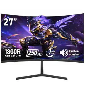 Gawfolk 27 Inch PC Computer Screen,1800R Curved Gaming 250Hz Monitors, FHD 1080p 1ms, Freesync, 98% sRGB,Built-in Speaker, HDMI2.0DisplayPort, Compatible with Wall-Mounted 100 * 100MM-Black