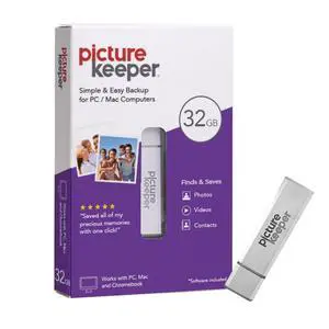 Picture Keeper for Mac & PC - 32GB USB Stick Backup for Photos, Videos, Contacts, Laptop, Computer and MacBook Flash Drive Memory Backup- 32GB, Silver