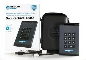 SecureData SecureDrive BT 500GB Hardware Encrypted USB 3.0 Ext Drive FIPS 140-2 Level 3 Unlock via Phone app TAA Compliant, CJIS, HIPAA, CMMC, GDPR Compliant, Works with Mac and Win Free AV