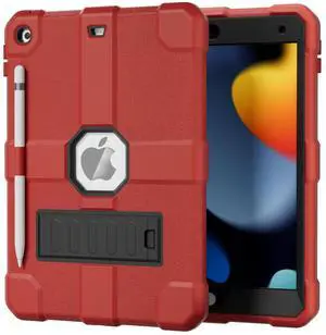PZJI Case for 9th/8th/7th Generation, Hybrid Shockproof Rugged Drop Protective Case with Kickstand for iPad 10.2 Inch (2021/2020/2019 Release) (Red+Black)
