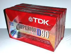 TDK D90 High Output 90 Minute Cassette Tapes, Black, Set of 7