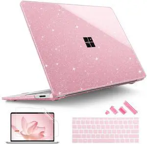 Tuiklol Slim Sparkly Case for Microsoft Surface Laptop 13.8 inch 2024 Release 7th Edition Model: 2036 with Plastic Hard Shell Case + Dust Plug + Screen Protector + Keyboard Cover,Sparkly Pink