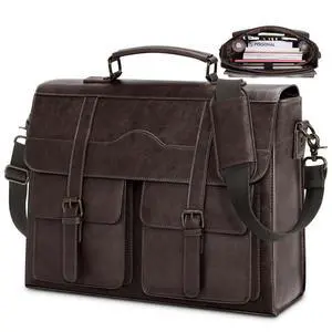 RAINSMORE Mens Messenger Bag 17 Inch Vintage Leather Laptop Briefcase Magnetic Closure Large Satchel Computer Shoulder Bag for Office Travel College, Coffee