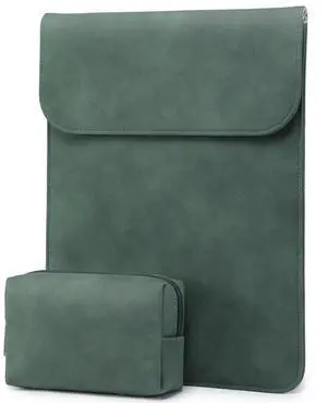 HYZUO 15 Inch Laptop Sleeve Bag for MacBook Air 15 M4 A3241 M3 M2 2025-2023, 15" Surface Laptop 7/6/5/4/3, MacBook Pro 15 2019-2016, Faux Suede Leather Case Cover with Carry Pouch, Midnight Green
