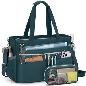 RAINSMORE Teacher Tote Bag for Women 15.6 Inch Laptop Briefcase with Clutch Bag, Nurse Bags Professional Work Handbag for Office College Nursing, Large Utility Tote Messenger Shoulder Bag, Dark Green