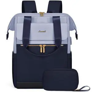LOVEVOOK Laptop Backpack for Women, 15.6 Inch Work Laptop Bag with USB Port, Fashion Teacher Nurse Backpack Purse, Waterproof Travel Computer Backpack with Organizer Bag, 2PCS, Grey Blue-Ink Blue
