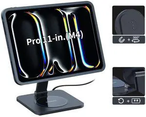 EMONITA Magnetic Stand on Desk with Charging Case A11 for iPad Pro11-Inch (M4), Classic L Shape, Sturdy Metal Base, Strong Magnets, 360 Rotation, 90 Tilt