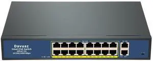 NICGIGA 18 Port PoE+@250W Switch - 16 Ports, 2 Gigabit Uplink, VLAN Mode, RackMount, Plug and Play