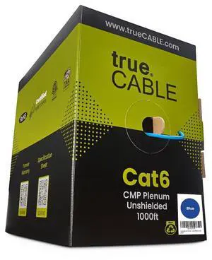 trueCABLE Cat6 Plenum (CMP), 1000ft, Blue, 23AWG 4 Pair Solid Bare Copper, 550MHz, PoE++ (4PPoE), ETL Listed, Unshielded Twisted Pair (UTP), Bulk Ethernet Cable