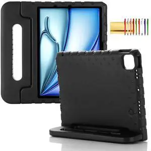 Kids Case for iPad Pro 11" M5 M4 & iPad Air 11" 2025/2024 Shockproof Case with Pencil Holder, Techcircle Rugged Handle Stand Lightweight EVA Foam Bumper Protective Child Drop Proof Cover, Black
