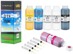 LKB 6x500ml DTF ink premium pigment ink for PET film heat transfer printing refill ink for all DTF printer with printhead DX5 DX7 5113 XP600 I3200 etc (2White 1Black 1Cyan 1Magenta 1Cyan 3000ml)