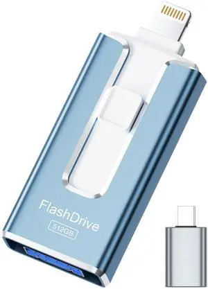 (No APP Required) MFi Certified iPhone Photo Stick, USB Flash Drive 512GB for Photo/Video Backup, 3 in 1 iPhone Memory Stick, High-Speed Thumb Drive Compatible for iPhone/iPad/Android/PC Pink