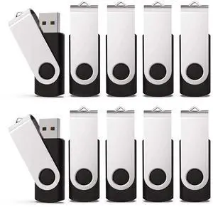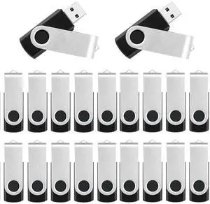USB Flash Drive 2GB 20 Pack, Bulk USB 2.0 Flash Drives Thumb Drive Swivel Memory Stick Jump Drive Pen Drive, Black, 2 GB, 20 Pieces