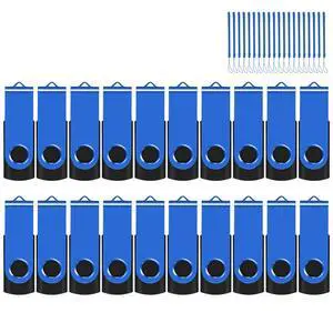 EASTBULL 8GB USB Flash Drive Bulk Thumb Drives 20 Pack with Lanyards USB 2.0 Memory Sticks Zip Drive Pen Drive for Storage and Backup Blue 20PCS 8GB