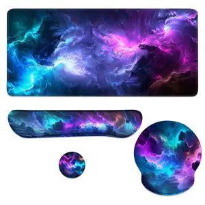 Galaxy Mouse Pad Set Abstract Cosmic Neon Nebula Universe Gaming Mousepad 4in1 Desk Mat for Desktop Wrist Support Cup Coaster Set Ergonomic Computer Desk Arm Wrist for Decor Home Office