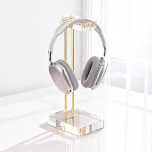 Headphone Stand Headset Holder for Desk, Solid Christal-Clear Acrylic with Gold Hardware Earphone Hanger for Gaming Room Office Accessories