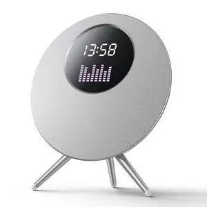 Bluetooth Speakers for Home with LED Screen, Gift for men women,80W Decorate Speakers for Living Room, Bedroom, Desk, Office,Support TF Card/USB/MIC/AUX Silver