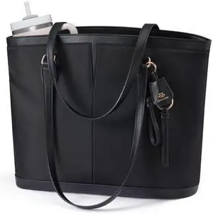 LOVEVOOK Laptop Tote Bag for Women, 15.6 Inch Lightweight Work Computer Bag with Cup Holder, Waterproof Office Briefcase Travel Handbag Purse Gifts for Women Black