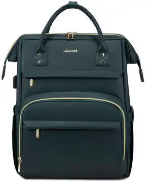 LOVEVOOK Leather Laptop Backpack for Women 17 inch,Travel Backpack Purse Nurse Teacher Backpack Computer Laptop Bag,Professional College Business Work Bag Carry On Backpack with USB Port,Dark Green