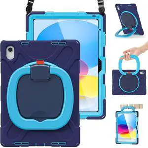 BRAECN Case for iPad (A16) 11th/10th Generation 11/10.9'' 2025/2022, Heavy Duty Shockproof Cover with Pencil Holder/Screen Protector/Rotating Handle Grip/Stable Kickstand/Shoulder Strap, Navy Blue