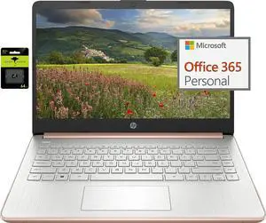 HP Portable Laptop, Student and Business, 14" HD Display, Intel Quad-Core N4120, 8GB DDR4 RAM, 64GB eMMC, 1 Year Office 365, Webcam, RJ-45, HDMI, Wi-Fi, Windows 11 Home, Silver