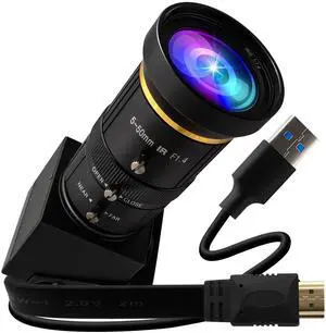 ELP 4K USB3.0 HDMI USB Camera Manual Zoom Webcam 4K 60fps PC Camera Mini Close-up Camera for Computer H.264 Telescope USB Security Camera 8mp Industrial CCTV Camera (5-50mm 10X Zoom Lens)
