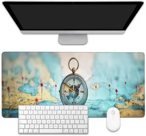 EOBKLAX Mouse Pad,Compass on World Map Desk Mat for Desktop,Desk Pad with Non-Slip Base and Stitched Edge,Extended Mousepad for Office and Home 35.4X15.7 Inch
