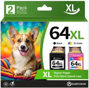 EaseFusion 64XL Black and Color Ink Cartridge Remanufactured Replacement for HP Ink 64 HP64 HP64XL Combo Pack Compatible with HP Envy Photo 7800 7855 7858 7100 7155 6200 6255 Tango X Series Printers