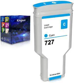KSUMEI HP 727 Remanufactured Ink Cartridge Compatible Dye Ink Compatible for HP DesignJet T920 T930 T1500 T1530 T2500 T2530 Printers 300 ml (Cyan, F9J76A)