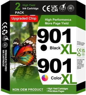 901XL Ink Cartridges Black/Color Combo Pack Remanufactured Ink Cartridges Replacement for HP 901 901 XL Compatible with Officejet 4500, J4524, J4540, J4550, J4580, J4624, J4640, J4660, J4680 Printer
