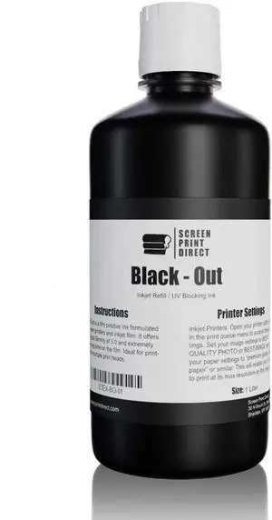 Screen Print DirectUV Blocking Ink Refill (1 LTR) - Black Out Universal Inkjet Refill for Film Positives, High Opacity Ink for Waterproof Inkjet Film - Black Dye Ink Screen Printing Supplies