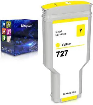 KSUMEI HP 727 Remanufactured Ink Cartridge Compatible Dye Ink Compatible for HP DesignJet T920 T930 T1500 T1530 T2500 T2530 Printers 300 ml (Yellow, F9J78A)