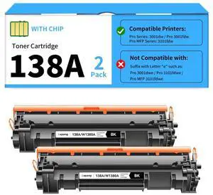 138A Toner Cartridges Black 2-Pack with Chip Replacement for HP 138A W1380A 138X W1380X Toner Cateridge Compatible with Laserjet Pro 3001dw 3001dwe Laserjet Pro MFP 3101fdw 3101fdwe Printer 3001fdw