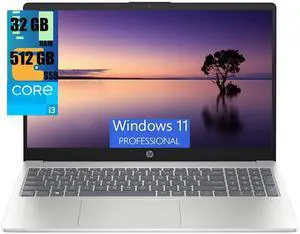 HP Essential Laptop, 15.6" HD Touchscreen, Intel Core i3-1215U, 32GB RAM, 1TB PCIe SSD, Webcam, Type-C, HDMI, SD Card Reader, Wi-Fi, Windows 11 Home, Silver