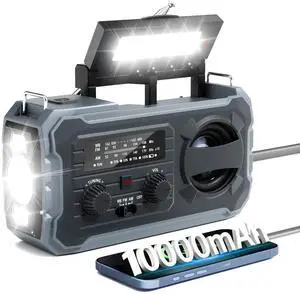 Hand Crank Flashlight, 3000mAh NOAA Weather Radio Flashlights with 3 Way Power Sources, Wind Up Flashlight Hand Crank Cell Phone Charger, Portable Radio AM/FM with Reading Lamp for Emergency/Outdoor