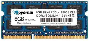 DDR3 1600MHz 8GB PC3L-12800S DDR3L 12800 Sodimm, Royemai 2Rx8 1.35V / 1.5V CL11 204-pin RAM Memory for Laptop Notebook Computer