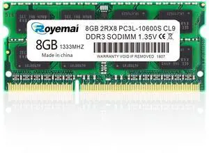 8GB DDR3L/DDR3 10600S 1333MHz RAM, Royemai PC3L/PC3 10600 SODIMM 1.35V/1.5V CL9 2Rx8 Notebook Laptop Computer Memory Module