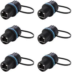 PENGLIN 6PCS Waterproof CAT6 RJ45 Bulkhead Ethernet Coupler, Shielded RJ45 Industrial Panel Mount Connector,RJ45 Ethernet LAN Cable Connector Female to Female, Gold