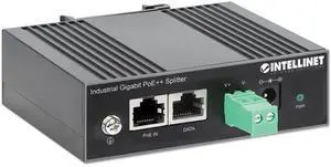 Intellinet Industrial PoE++ Splitter 60W Input, Two 12V DC Output via 2-Pin Terminal Block or DC Jack, IP30-Rated Metal Housing, DIN Rail Mount, 3 Yr Mfg Warranty 508940