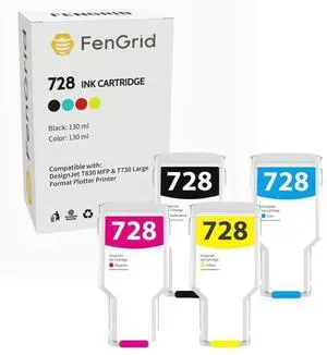 FenGrid Ink Cartridge HP 728 Compatible with DesignJet T730 T830 Printer (Black Cyan Magenta Yellow)
