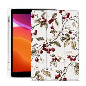 MAYCARI White Flowers Fruits Fashion Case for iPad 10.9 inch 2022 with Pencil Holder, Original Pattern iPad 10th Generation Soft TPU Back Protective Cover Shell, Auto Sleep/Wake Slim Shell - White
