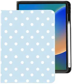 BlHMCASE Cute Kawaii Polka Dot for iPad Air5/Air4 Case with Pencil Holder, Auto Sleep/Wake, White Leather Soft TPU Back Cover for iPad 10.9 Inch 2022/2020