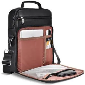 12.9-13 Inch iPad Leather Bag for 2026 2025 13 inch iPad Pro M4 & iPad Air M3 M2 with Magic Keyboard, iPad Pro 12.9, Travel Shoulder Carrying Sleeve Case Handle Bag, Black